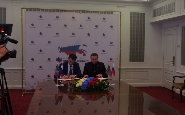 В начале заседания состоялась церемония подписания соглашений об установлении побратимских отношений между городами и регионами России и Донбасса.