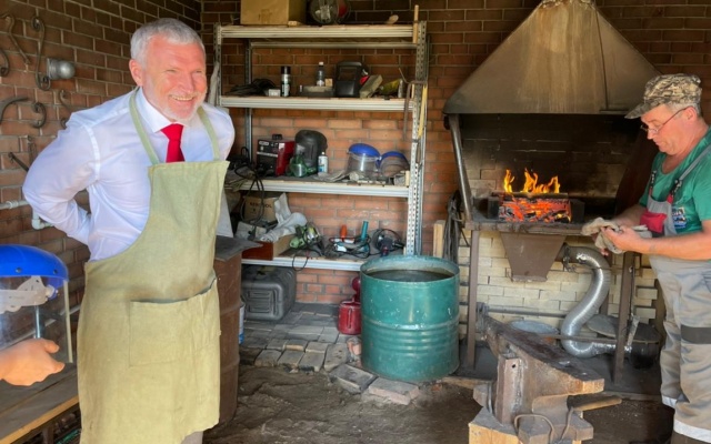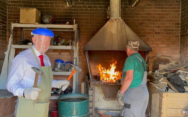 Сначала Алексею Журавлеву показали настоящую, действующую кузницу, которую соорудили на президентский грант. Пользуется огромной популярностью на экскурсиях. Депутат попробовал себя в роли кузнеца.