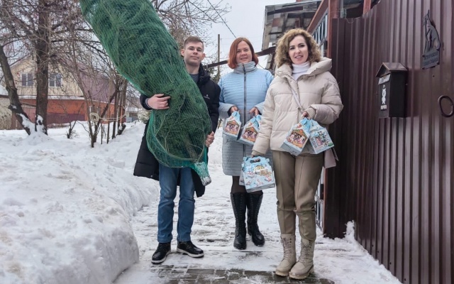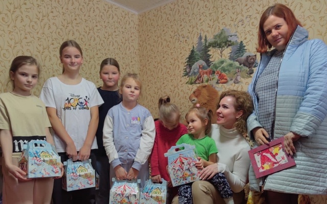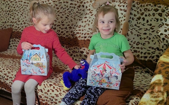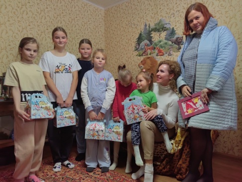 Девочкам вручили сладкие новогодние подарки, поздравили с наступающим новогодним праздником.