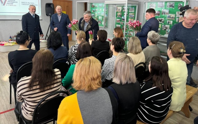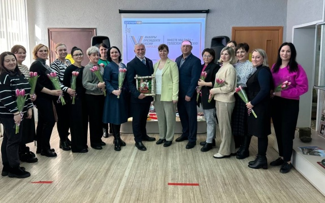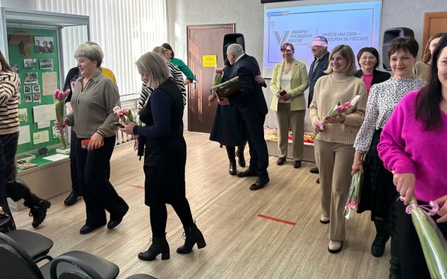 Алексей Журавлев вручил всем присутствующим женщинам цветы, поздравил их с наступающим праздником и пожелал всего самого наилучшего. Жительницы муниципалитета вручили политику памятный подарок – композицию, символизирующую одну из главных ценностей нашего общества – семью.