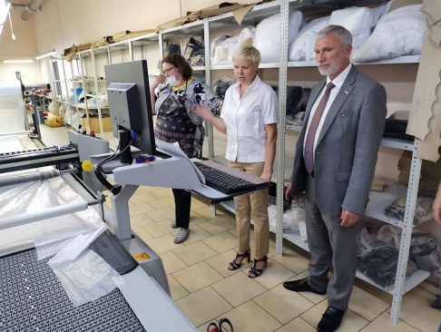 Журавлев пообщался с руководством производства, а также с сотрудниками цеха по пошиву школьной формы. В выставочном зале фабрики осмотрел образцы одежды. Это современное автоматизированное производство, на котором трудится порядка полусотни человек. Шьют детскую одежду, школьную форму, блузки, трикотаж.