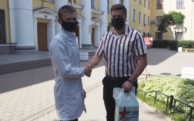 Накануне Дня медработника заместитель председателя регионального отделения партии "РОДИНА" в Воронежской области Артем Чекмарев встретился с группой студентов ВГМУ им. Н.Н.Бурденко, которые являются активистами и волонтерами в борьбе с коронавирусом.