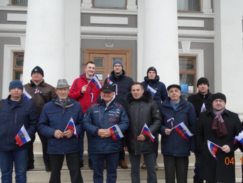 В 12.00 партийцы стали частью массового тематического флэшмоба, который был организован на стенах Тульского кремля. Около тысячи человек выстроились в шеренгу по всей окружности стен и подняли части триколора, который сложился в огромный флаг России.