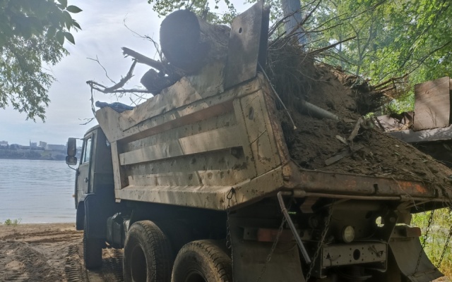 Помимо отходов древесины на месте складирования и фактического захоронения в лесной зоне осуществляется также отгрузка бетонных конструкций, автомобильных шин и других видов отходов. А общая территория вырубки ограждена навалами из спиленных деревьев и металлическими конструкциями, препятствующими свободному проходу по берегу реки Волги.