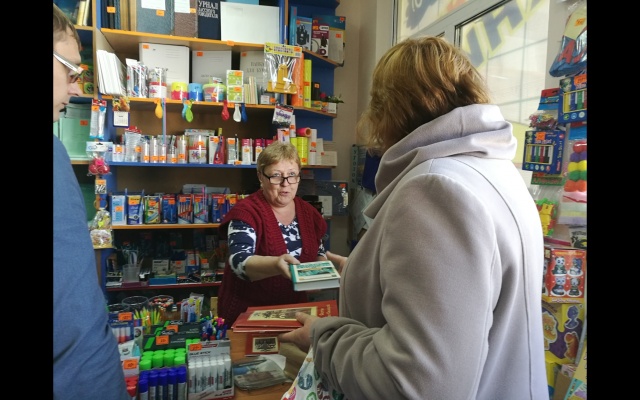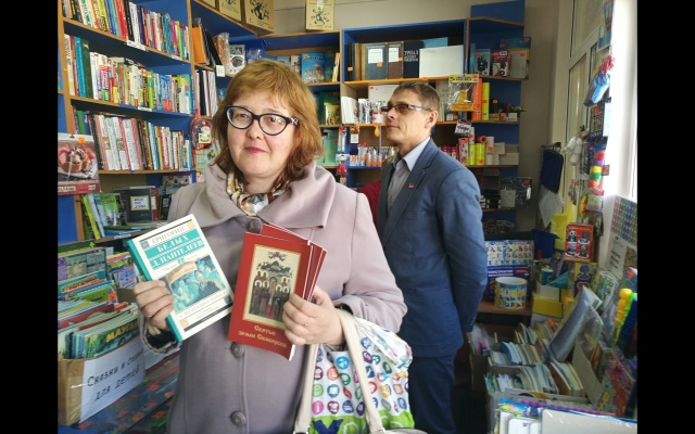 В настоящее время в Новоульяновске работает только один книжный магазин на ул.Ульяновской. Активисты партии поздравили продавца книжного магазина Нину Михайловну с этим событием. Каждому покупателю была предоставлена возможность выбрать любую книгу в подарок от партии "РОДИНА".